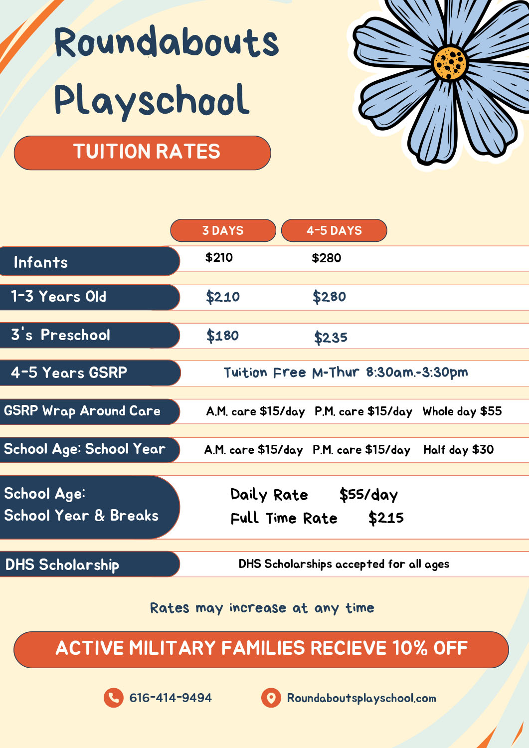 Getting amazing care for your child doesn't have to come at an exorbitant cost. Roundabouts Playschool, LLC offers fun and educational programs at reasonable rates in West Olive, MI.